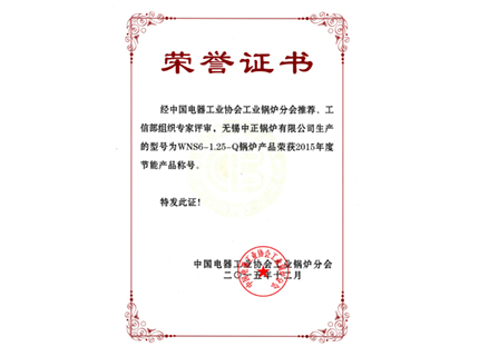 2015年11月, WNS6-1.25-Q型燃?xì)饫淠羝仩t榮獲工信部評(píng)選的"節(jié)能產(chǎn)品"